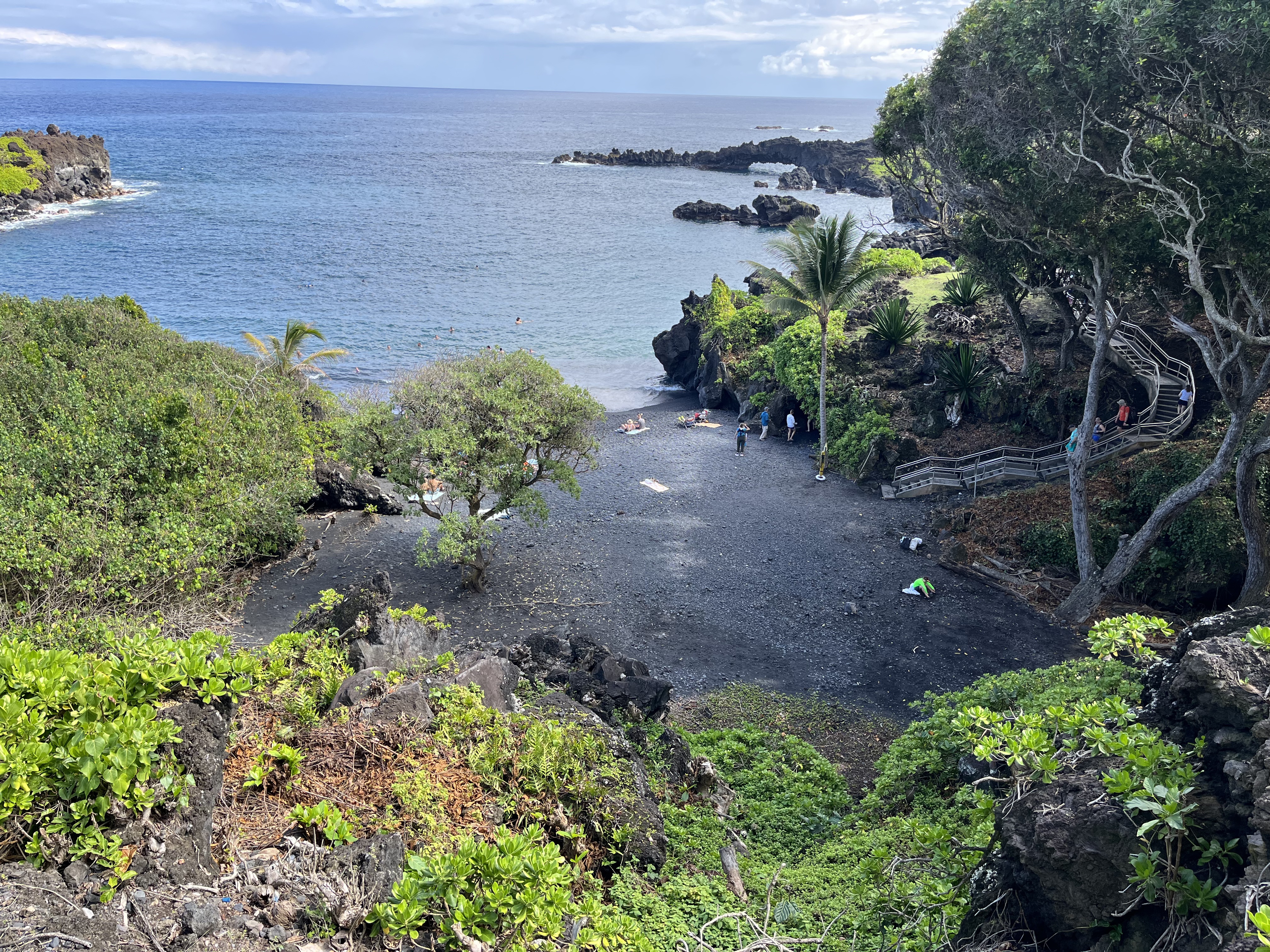 We decided to see if we could find Robin Master’s Estate (from the original Magnum P.I), which was southbound from Kailuia on the Kalaniana’ole Highway. We found it, but didn’t realize it until we’d blown right past it. It’s not like we could see through the hedges anyway, so we just kept on going South to see what we could see. It turned out to be a great drive along the coast where we stopped at a couple of scenic outlooks before reaching Maunalua Bay. We stopped briefly at the beach park, noting that the bay itself is really quite sheltered and shallow. The waves could be seen breaking way out at the mouth of the bay.