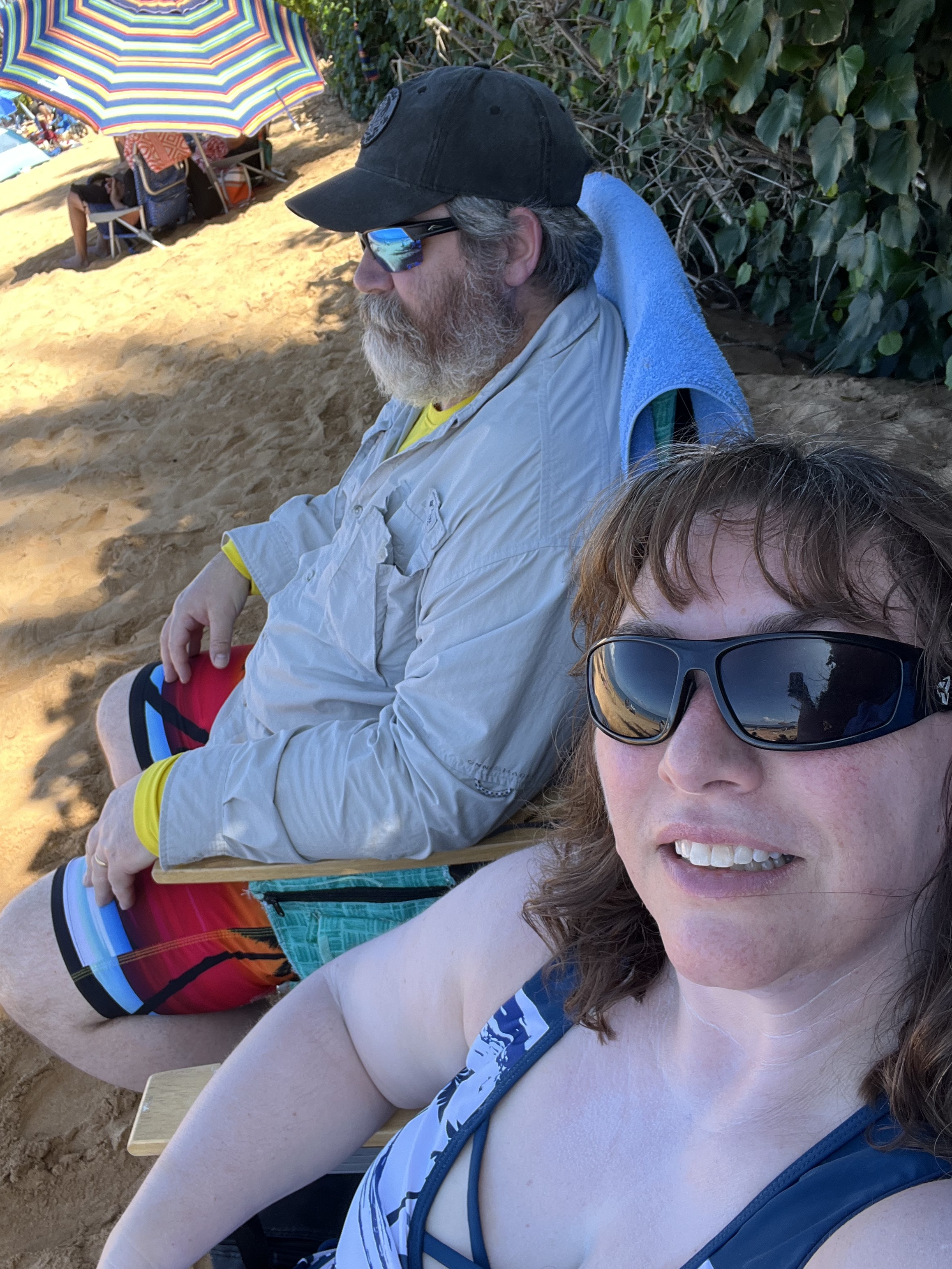 We hit gold again for supper. We did a Google search of “restaurants near me” and at first we tried to find Boston’s Pizza out of curiosity, because, you know, Boston Pizza… Boston’s Pizza… but again because of the ridiculous highways and roadways we ended up blowing right past that place. So we got off the friggin’ highway and looked again at Google and this time found a place called Da Seafood Cartel which had great reviews and looked interesting. We followed non-highway streets to get to the restaurant… which was located on the side of Kamehameha Highway <insert face-palm emoji here>. At any rate, the restaurant is a smallish sized cafe kind of place that calls itself “Mariscos Sonora Style”, which is basically Mexican seafood dishes from the Sonora region. It was fantastic! We shared a bowl of house made tortilla chips that were delish and not salty (yay!), with salsa and a blue crab tobiko spread. I had the fish and shrimp tacos. There was so much fish and shrimp and toppings that there was no way I was going to be able to actually make a handheld taco with the two small tortillas, so I dug into it with my fork instead. So yummy! Dan had one of the quesadillas (I can’t remember which one: smoked marlin, steak, or shrimp). We will definitely come back here next time.