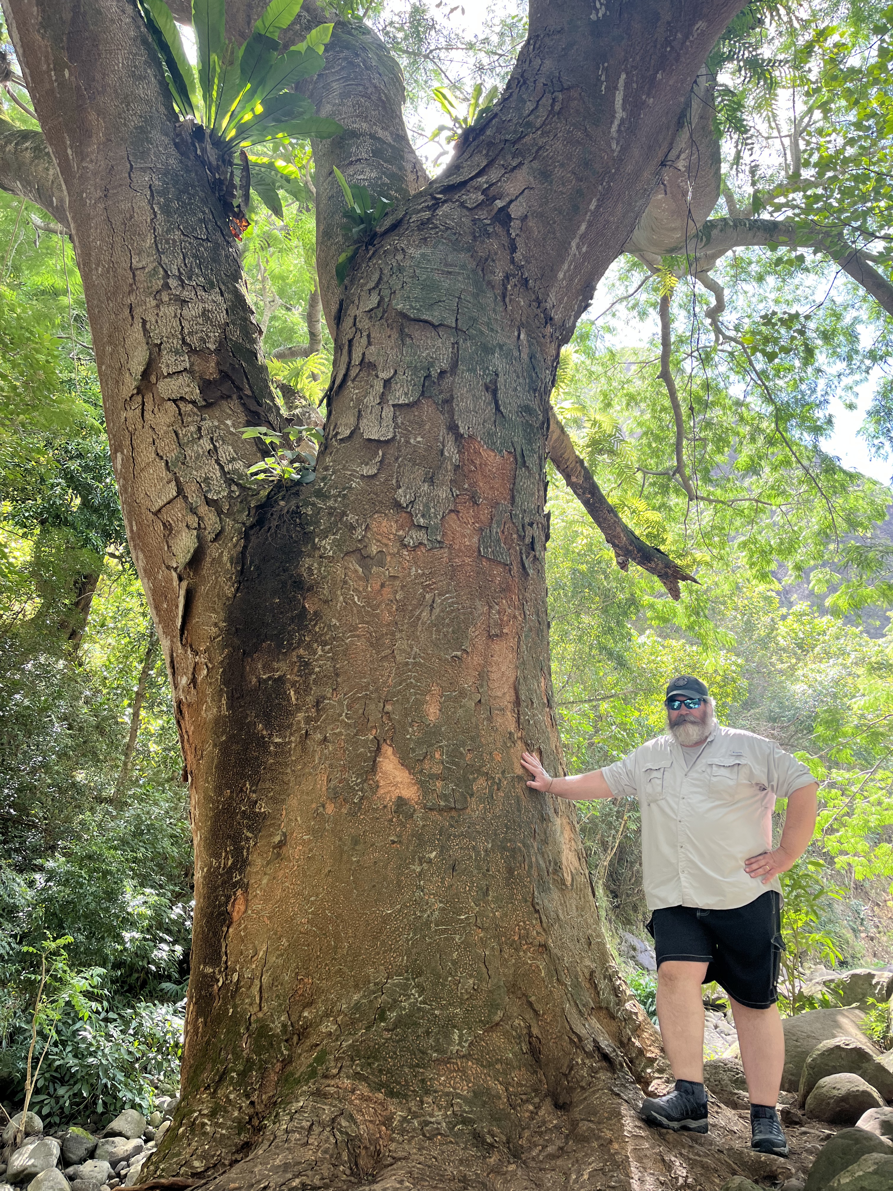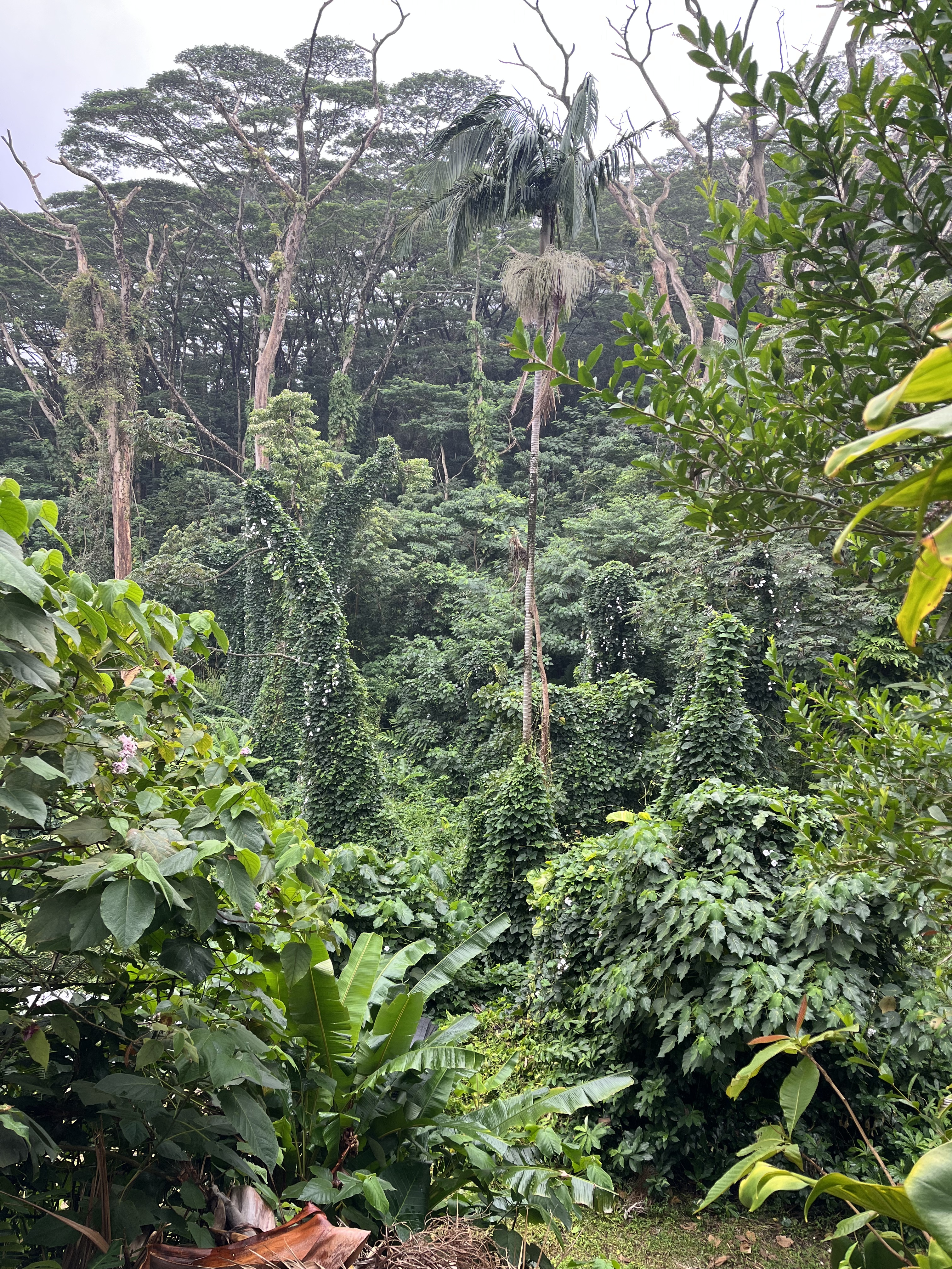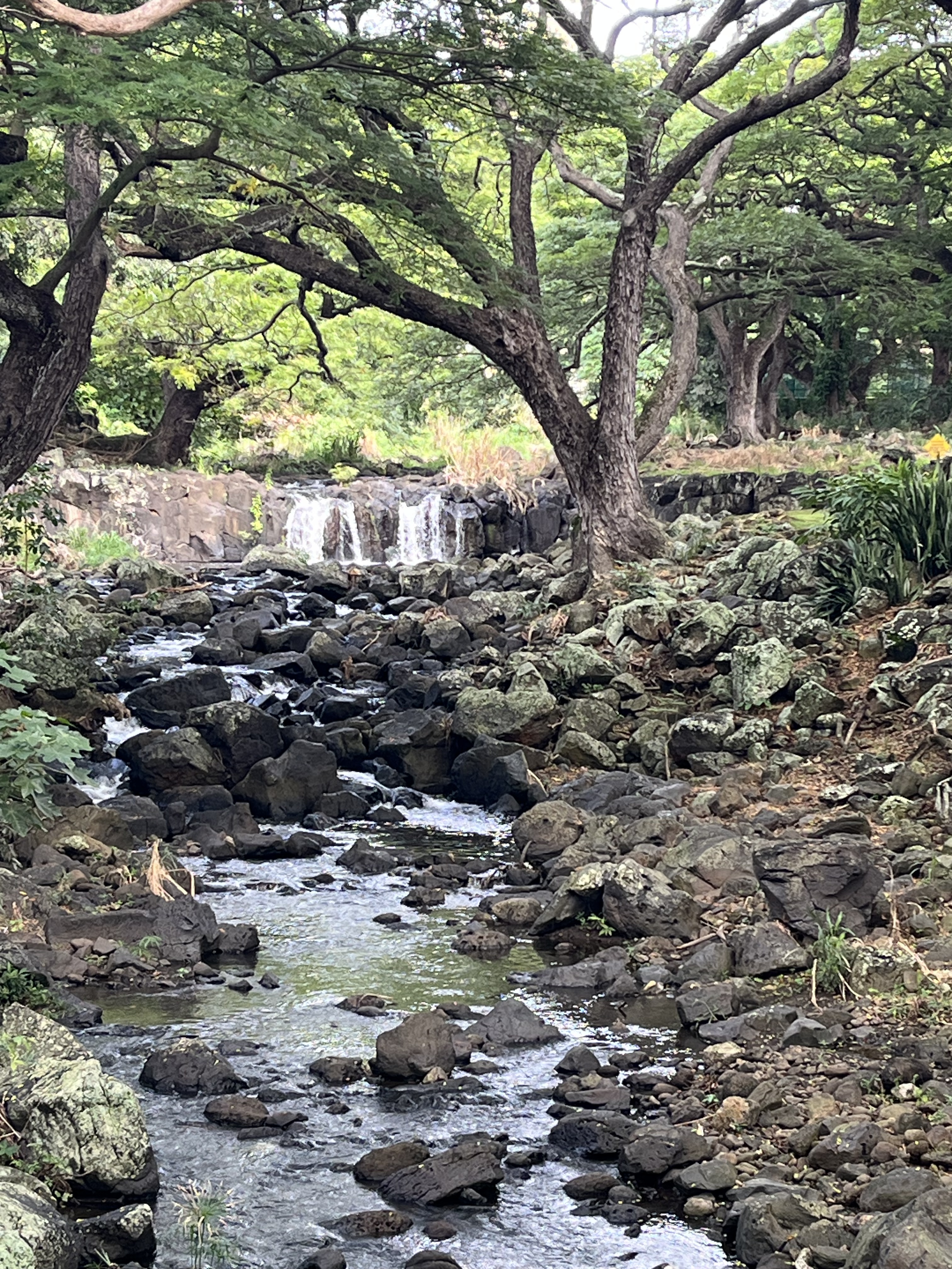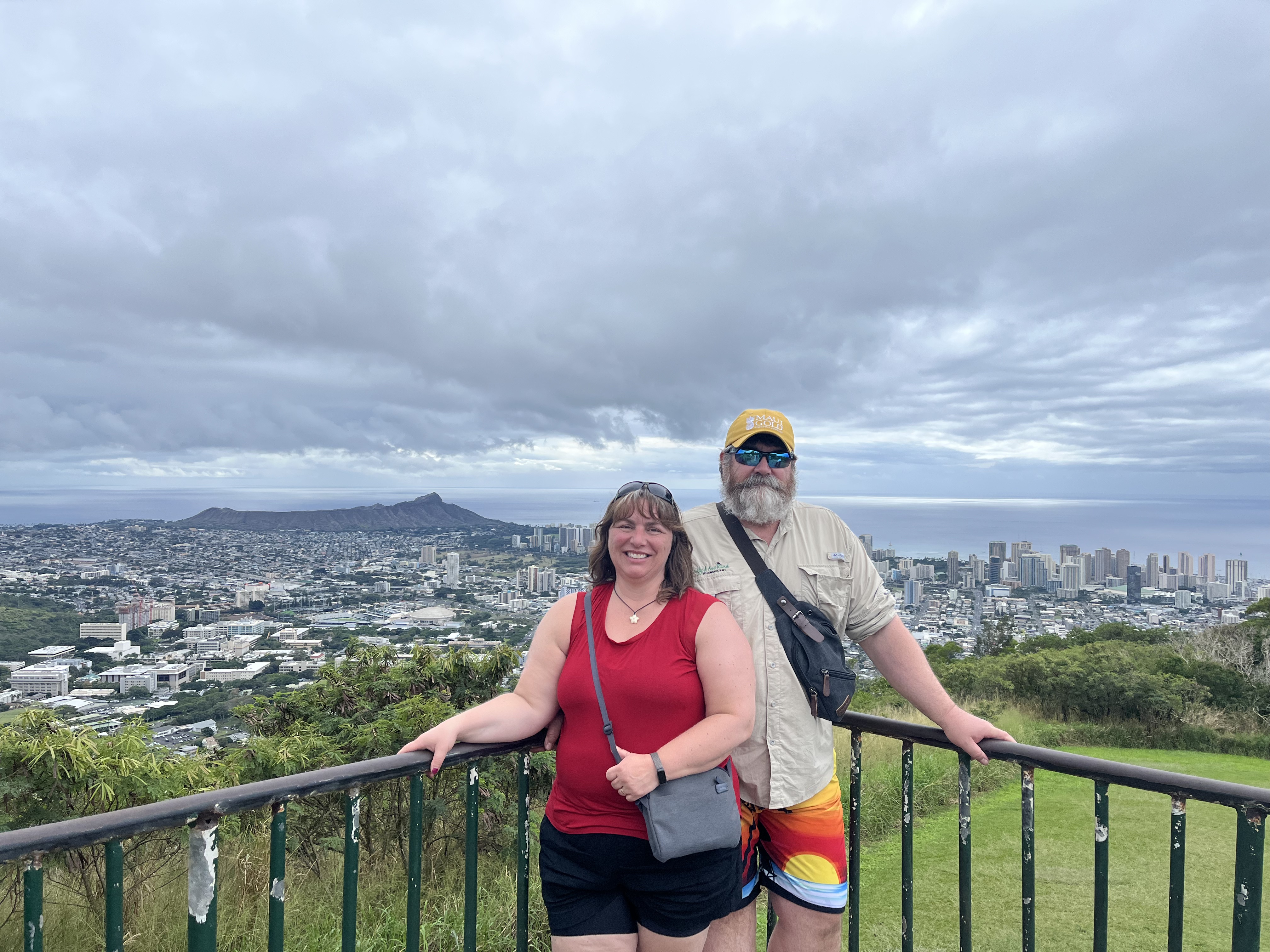 We decided from this point to see if Shaka Guide had any audio road tours for Oahu, and lo and behold they did. Several, in fact. We decided to try and follow the East Oahu guide backwards back to Waikiki, but we were already too close to Waikiki to actually get anything other than the Hawaiian music from the tour. But then we took the “Honolulu’s Backyard Rainforest Tour”, which took us through Manoa, to the Lyon Arboretum, back down past the Manoa Chinese Cemetery, up to the Tantalus Mountain (Pu’ukakea) lookout, and down the other side of the mountain on a lovely, windy, zigzaggy drive through the rainforest to the Punchbowl Memorial (National Memorial Cemetery of the Pacific). The tour proper ended shortly after this, but offered an extended tour into downtown Honolulu “to discover a few hidden gems”. We took part of the extended tour and did stop at what was a visually lovely little inner-city waterfall, but the water was contaminated and almost all the areas we drove by were really sketchy. The main tour was really cool though, so I would definitely recommend taking that part.