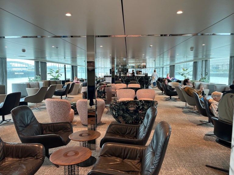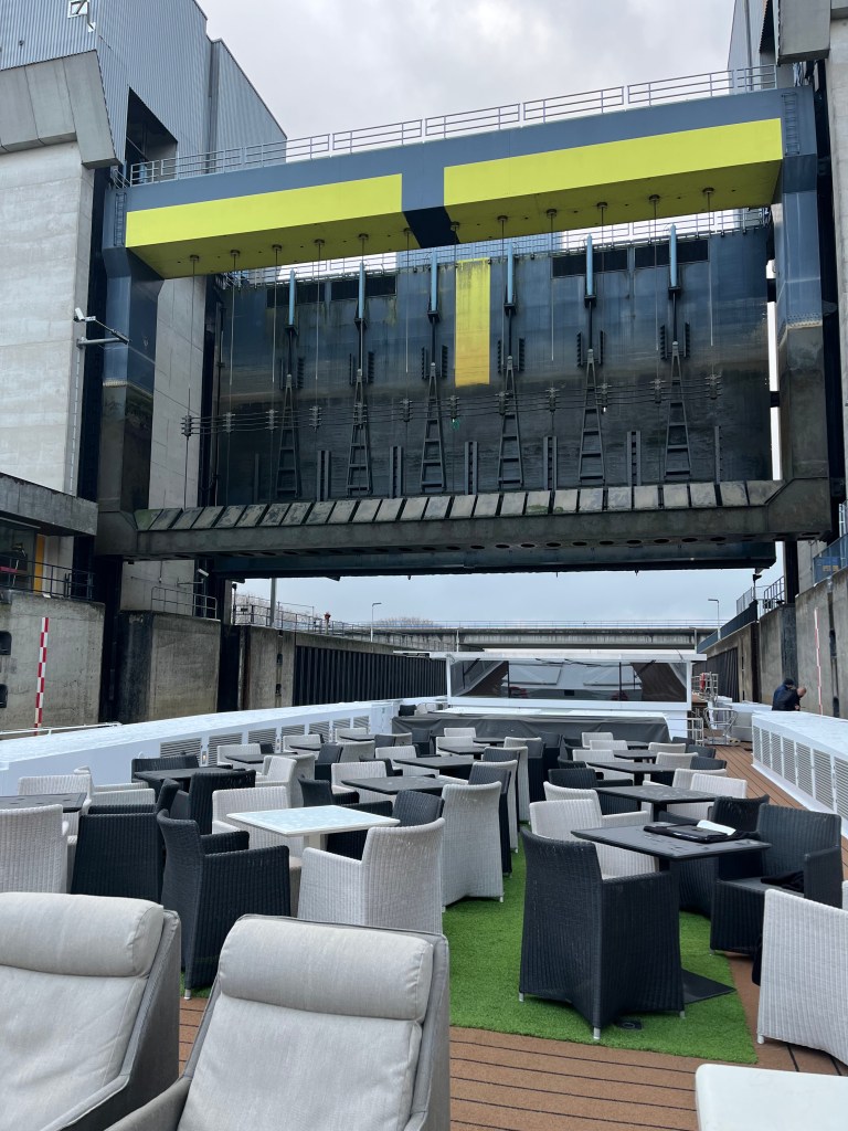 All that watching for castles and such caused me to completely forget about the Corn Hole tournament that was held on the aft side of the sundeck, well behind where I was sitting in the fore. Ah, well. After the Daily Port Talk and supper, we participated in “Name That Tune” with Hannah. Yes, that’s right, you heard me: WE participated in yet another social gathering!
