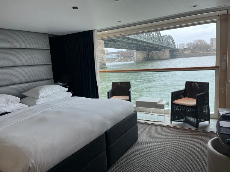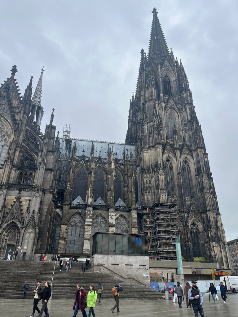 As we walked away from our ship, towards the triangle point that marks where the Mosel River meets the Rhine River, you can see across the Rhine a fortress sprawled up high on the hill. This is the Ehrhenbreitstein Fortress. It was built over the remains of an earlier fortress destroyed by France in 1801, and now houses a state museum. There’s a modern gondola that connects the west side of the river up to the east side where the fortress is. Most of the locals aren’t very happy with the design of the gondola station given its modern look placed in the heart of the historical district, and the potential impact it could have on their UNESCO funding. We did not actually go up to that fortress.