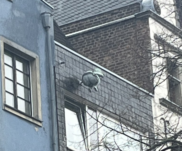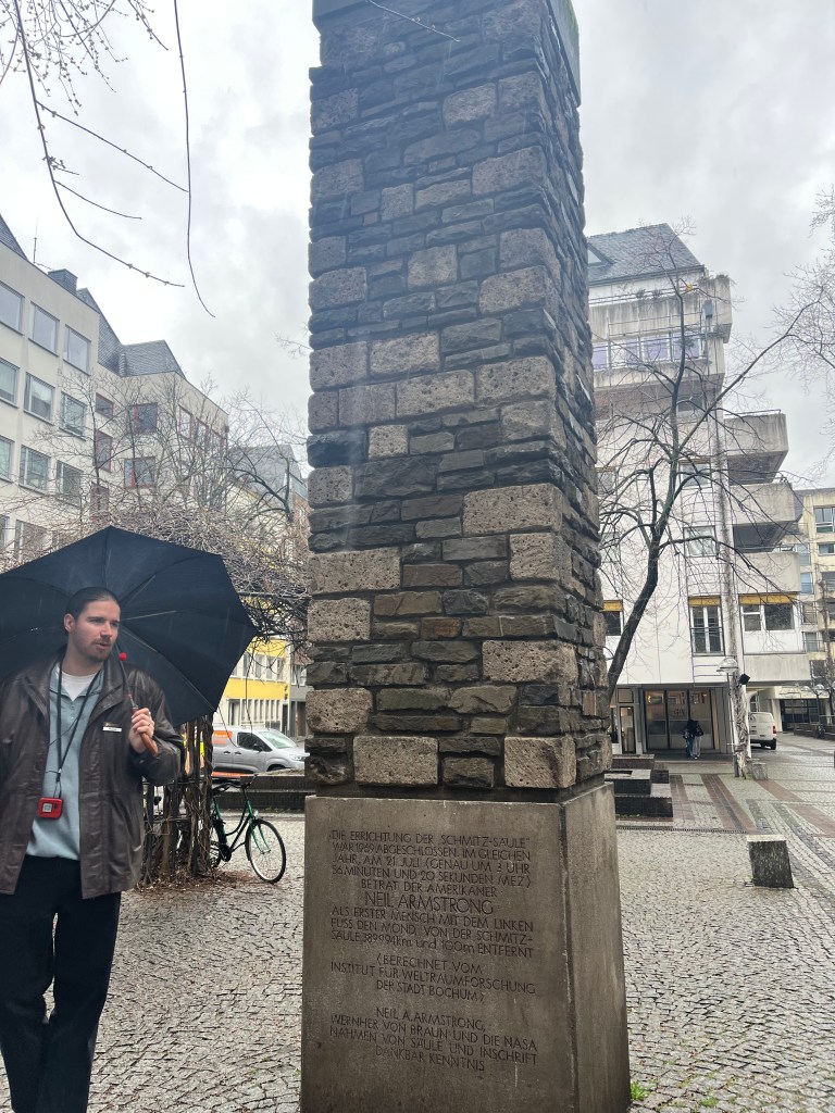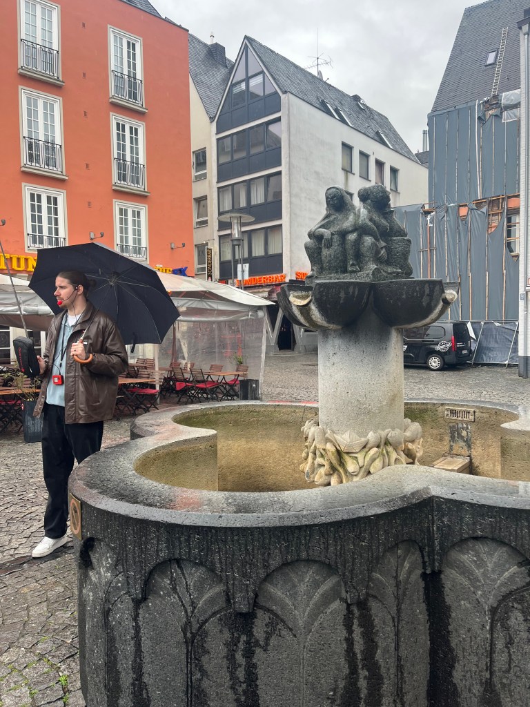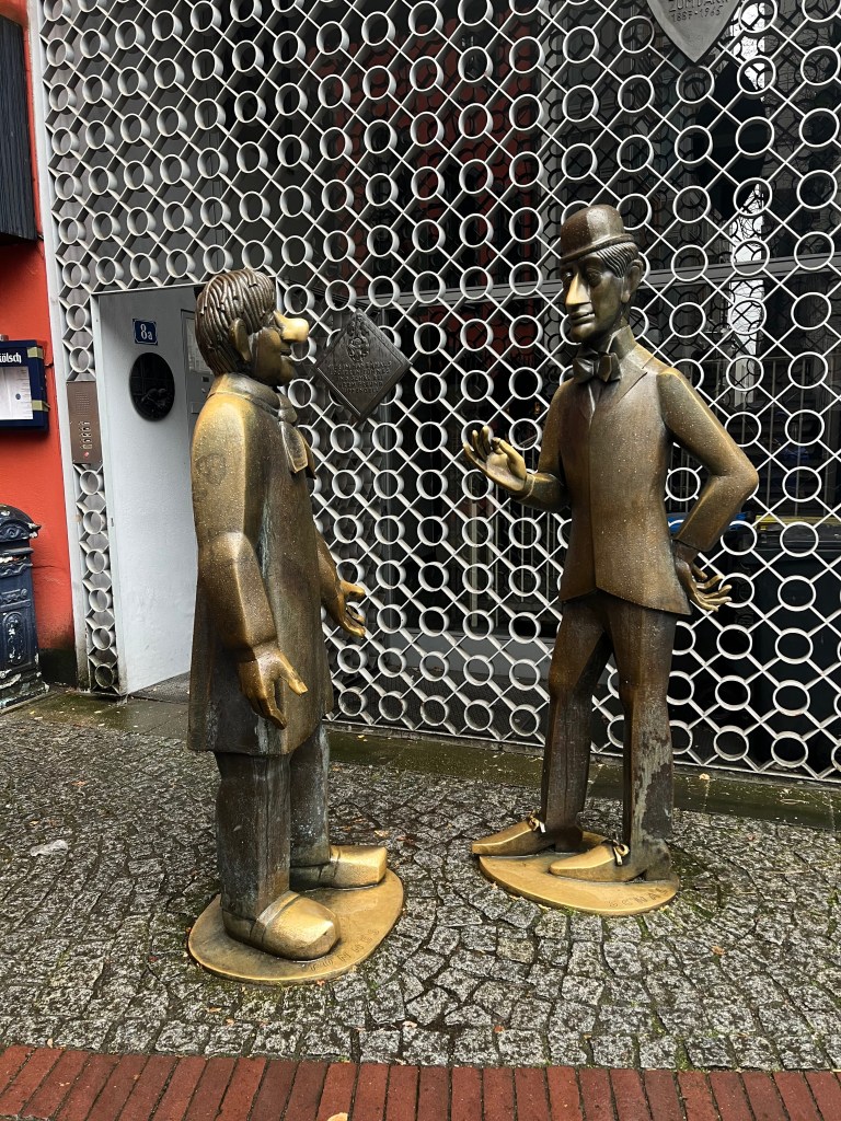 For about 20 years in the late 18th and early 19th centuries Koblenz was affiliated with France. During this time the French soldiers who occupied the town had children with the German women, often naming them Jean (Johann or Hans). When the French released Koblenz back to Germany, the French soldiers left the German women and their children behind. Over time the name Jean became Schang and eventually Schangel, referring to the German-French children. Those children grew up without fathers, and often were considered “rascals”. They apparently would go around spitting playfully at passersby and running away. Eventually, all native Koblenzers considered themselves Schangel, and being spit on by the Schangel children was a right of passage for newcomers to be accepted into the community as natives. In 1940, this fountain with a spitting child was built and dedicated to the poet who wrote the lyrics to the Koblenz anthem, Schangellied. There’s a plaque on the ground in front of the fountain where people can stand, and every few minutes the statue will spit a jet of water splashing you and effectively making you a Koblenzer. It wasn’t actually working while we were there, so Dan did not get to become a Koblenzer. The manhole covers throughout the community also depict the Schangel.