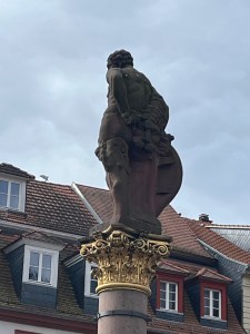 The Hercules Fountain in the Marktplatz was completed around 1706, commemorating the reconstruction of the city after the Nine Year’s War. The “official” description suggests Hercules is holding a lion skin symbolizing strength and resilience. Our guide told us the generally accepted subtext was that Hercules was sculpted to hold the lion’s head against his butt in yet another Rhineland insult to the French.