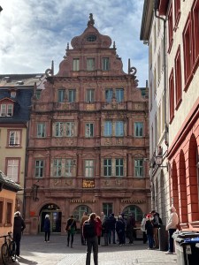 Off we went on our walking tour of Heidelberg. Our tour did not take us to Heidelberg Castle, but it brought us by it. There was another tour that would have included the castle, but we were warned that there was a steep hill involved. We later learned that it ended up not being a big deal because they managed to arrange for a shuttle to bring the guests up that hill instead of walking it. So that was a little disappointing for us. But the stroll was lovely nonetheless.