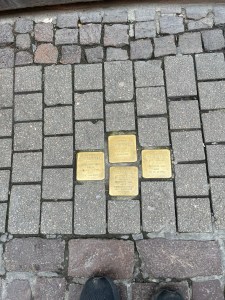 We strolled through the Markplatz where the Church of the Holy Spirit overlooks. It was constructed between 1398 and 1515, and those red doors you can just see below awnings under the long windows were where various market sellers would set up shop every day, and still do (they were open later in the morning today). There are carvings on the walls beside some of them, indicators of what the shops would sell. At the bakery stall the carvings were of different sized bretzels (pretzels, but bigger and softer products than the sticks we get in North America). If the customer questioned whether they got the size of bretzel they were paying for they could hold it up against the carvings to confirm.