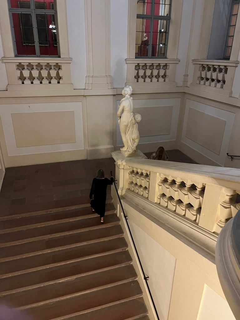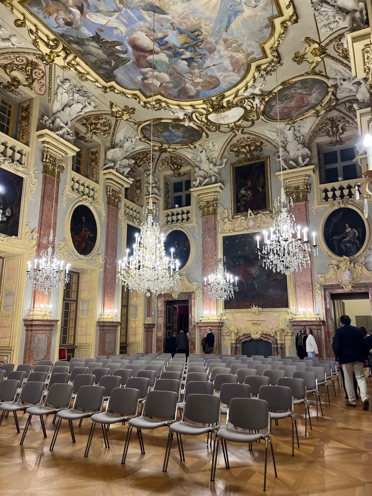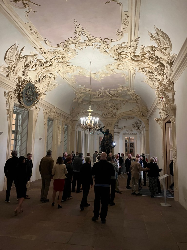 Shortly after arriving in Rastatt we all got as gussied up as we wished (honestly, Dan and I were moderately dressed up, but I did wear my Scottish shawl). Why? Oh, nothing special, just a classical concert with opera singers and a pianist at Rastatt Palace. It was wonderful! We arrived by bus, were escorted into the palace, served champagne, toured around some of the restored rooms, and then enjoyed the performance.