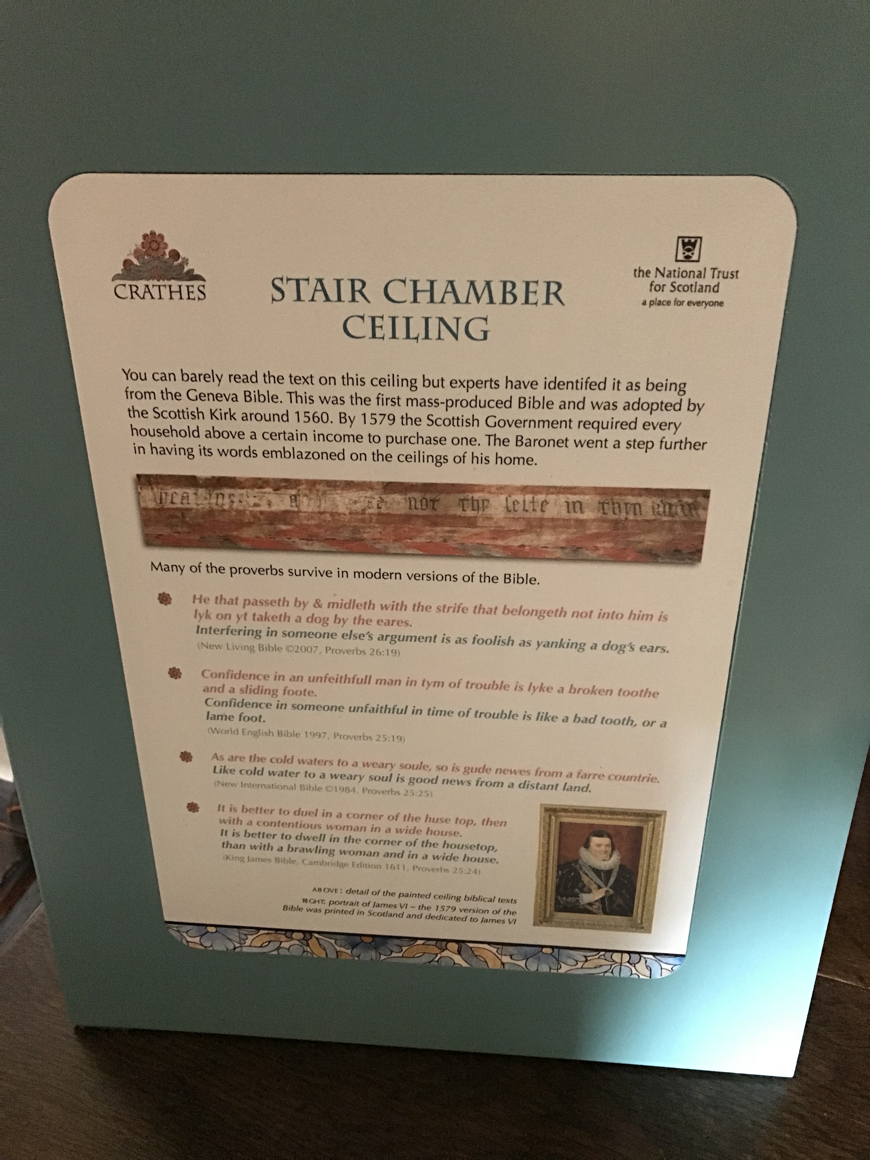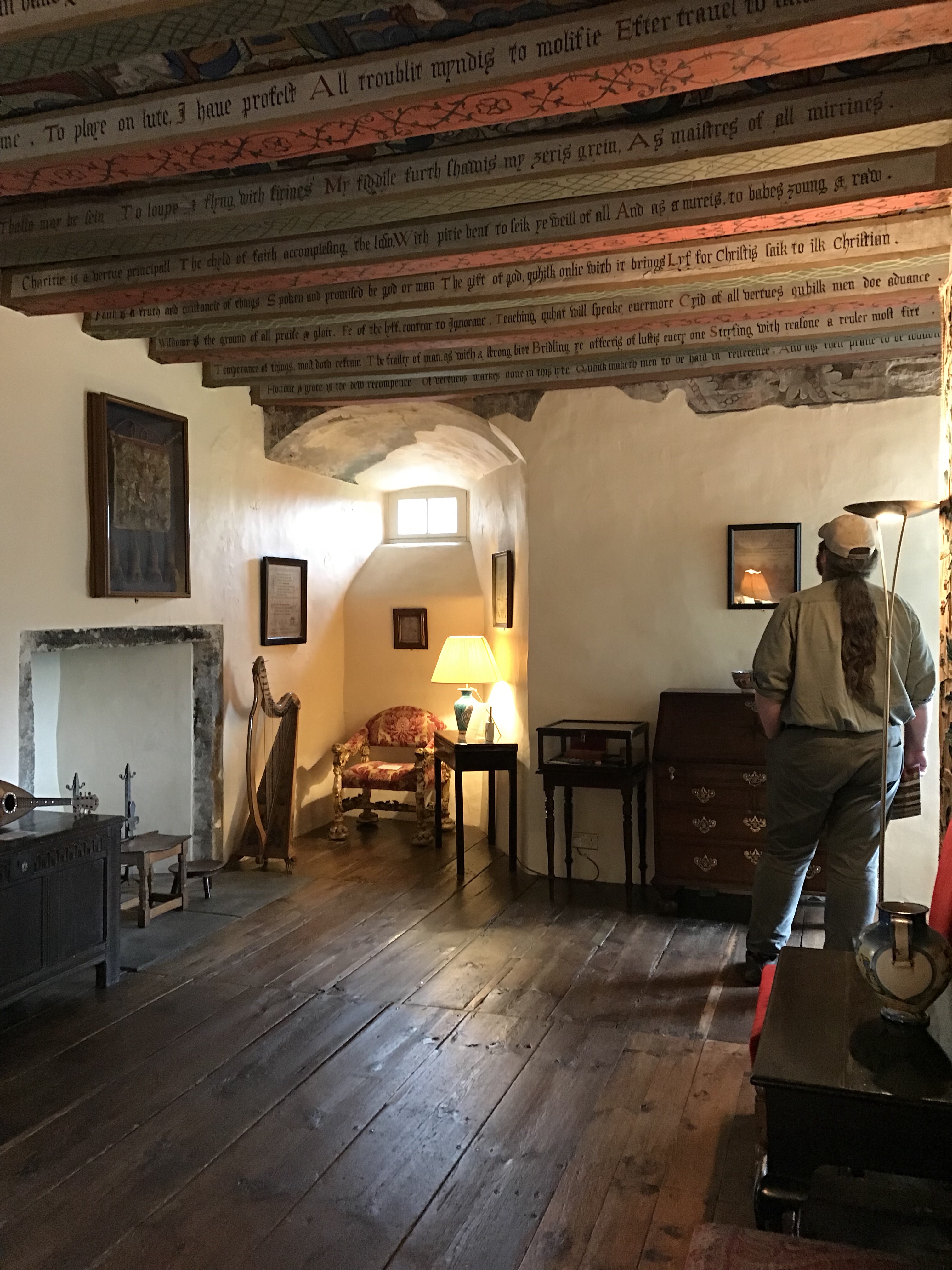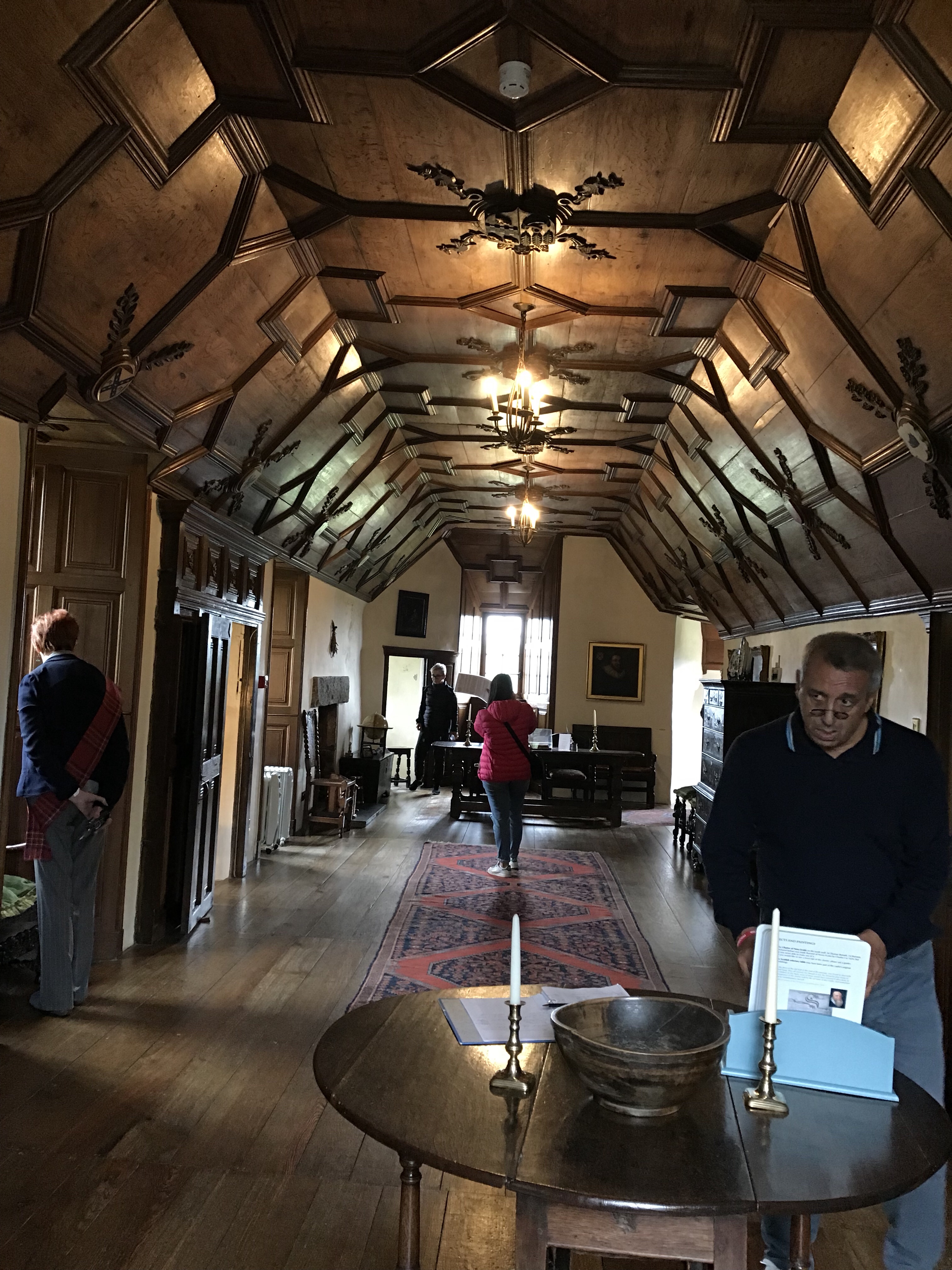 The Worked Room was traditionally the Laird’s Chamber, and is the only room left with carved door cases dating to the 1600s. It also contains the Laird’s Lug, which is a small secret room connected to a hidden chamber from which the Laird could spy on his guests in the Great Hall to see if they were plotting against him. Sound familiar?