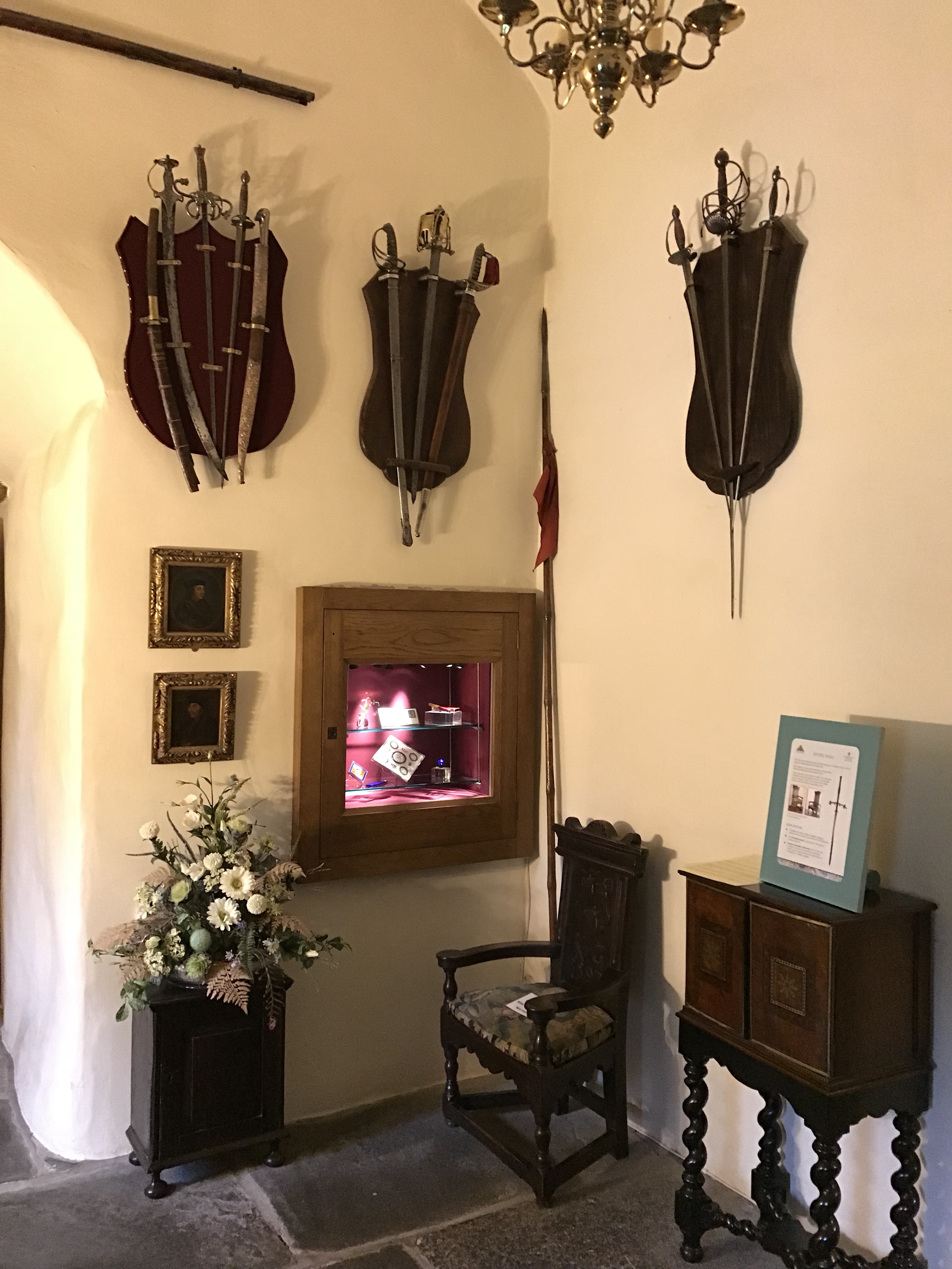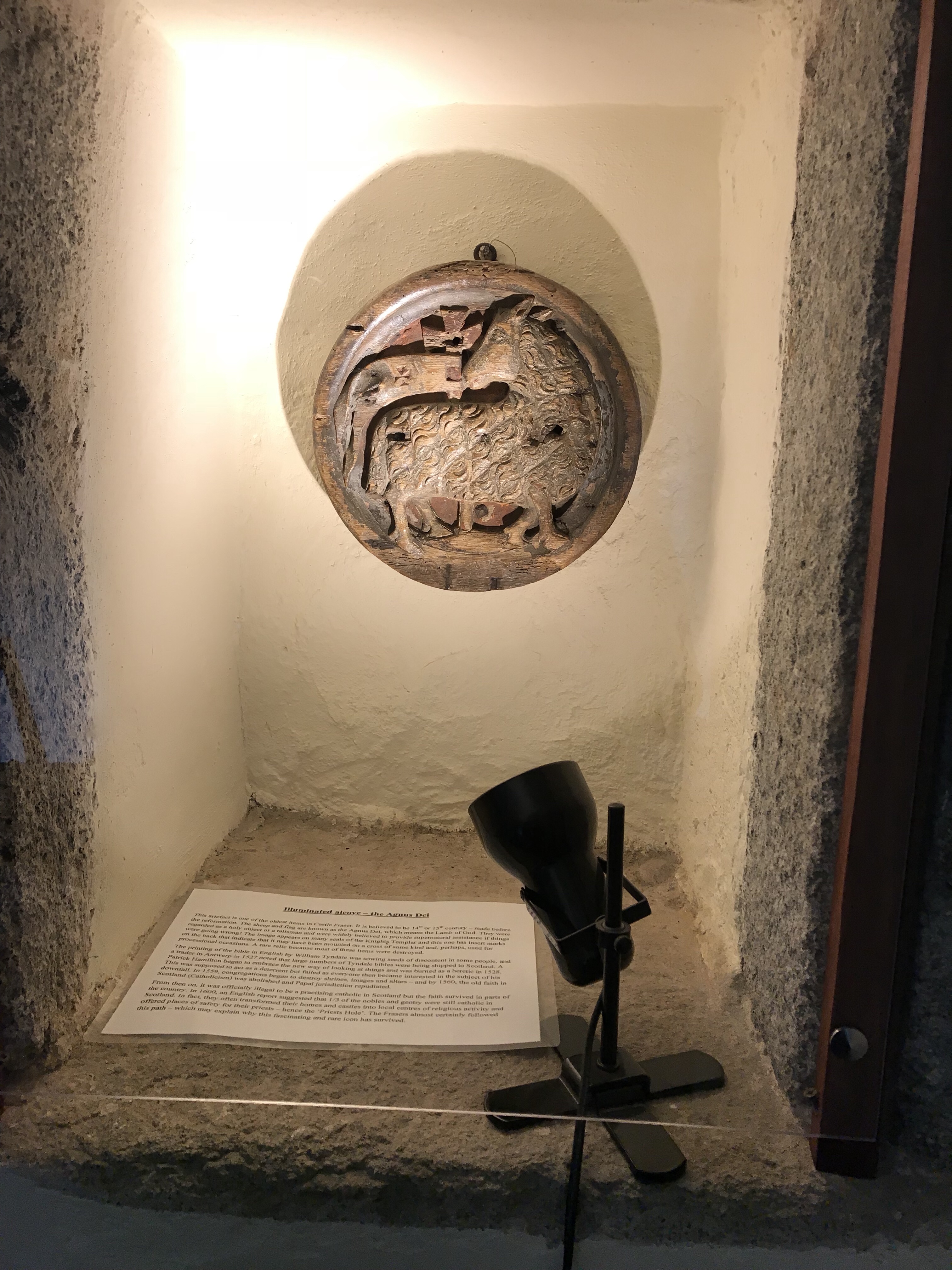 In the 1600s, the Charter House was used to store important papers, and this one in fact has a hidden compartment by the fire place with a trap door for those especially secret documents. By the 19th Century it had been turned into a bathroom. For whatever reason, they now keep the oldest item in the castle in this room: a wooden carving of the Agnus Dei (Lamb of God) from the 1500s.
